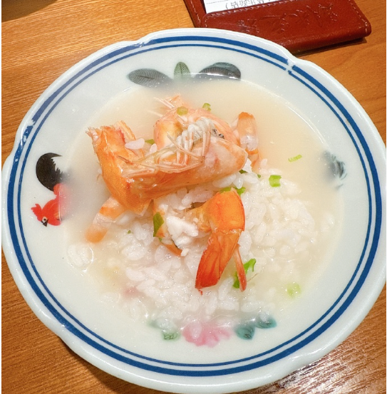 我们还点了一碗海鲜粥,挺鲜的,但是味道没有很好的融合,粥和虾的味道没有很好地融合。好在第二天一早,我两便约了 kiko 的老同学,广州待了五年的新广州人吃早茶。